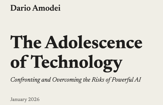 🚨 Le CEO d’Anthropic vient de publier “L’Adolescence de la Technologie” - il nous avait habitué à ce format avec “Machines of Loving Grace” (vivement recommandé). Dario Amodei prédit l’AGI dans 12-24 mois et il a une bonne visibilité sur les capacités des modèles...